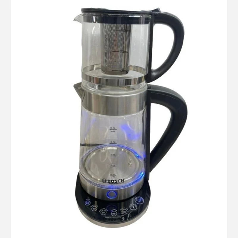 توان مصرفی : 1800 وات جنس بدنه : شیشه پیرکس ظرفت کتری : 1 لیتر ظرفیت قوری : 2 لیتر صفحه نمایش : تمام لمسی قابلیت : چرخش 360 درجه