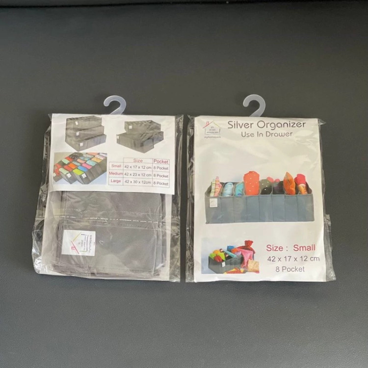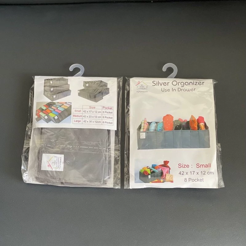 نظم دهنده کشو مای هوم مدل ترکیه کد L بسته 3 عددی سایز لارج هست و با بهترین و پارچه ضخیم با کیفیت ساخته شده است.این ارگانایزر در ابعاد 42x30x12 می باشد که به راحتی می توانید وسایل خود را در آن جای داده و مرتب کنید.در رنگ طوسی قسمت انتهایی و زیر هر جیب به کف پارچه اصلی دوخته شده است